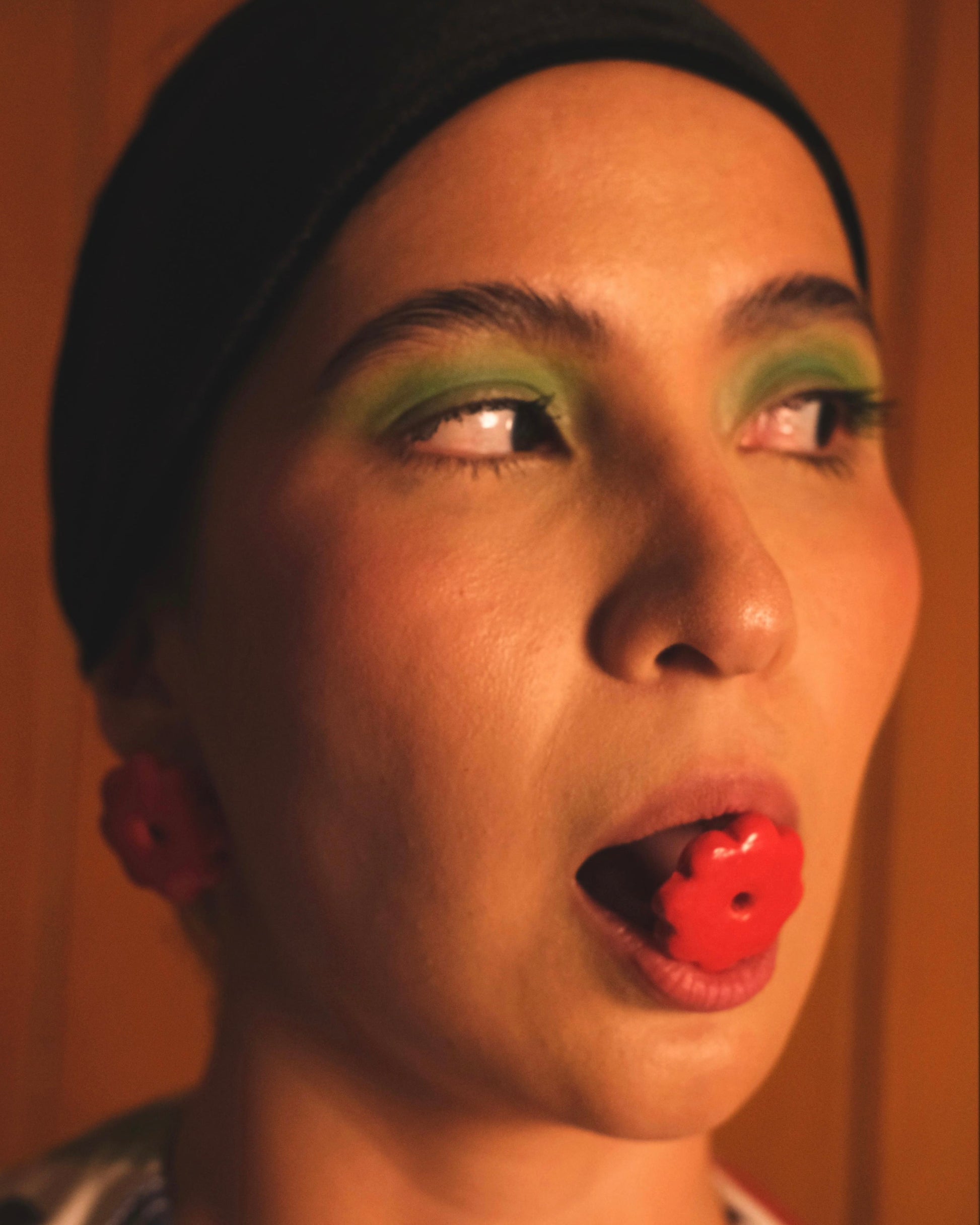 Aretes La Flor creados y pintados en cerámica artesanal. Disponible en dos versiones.