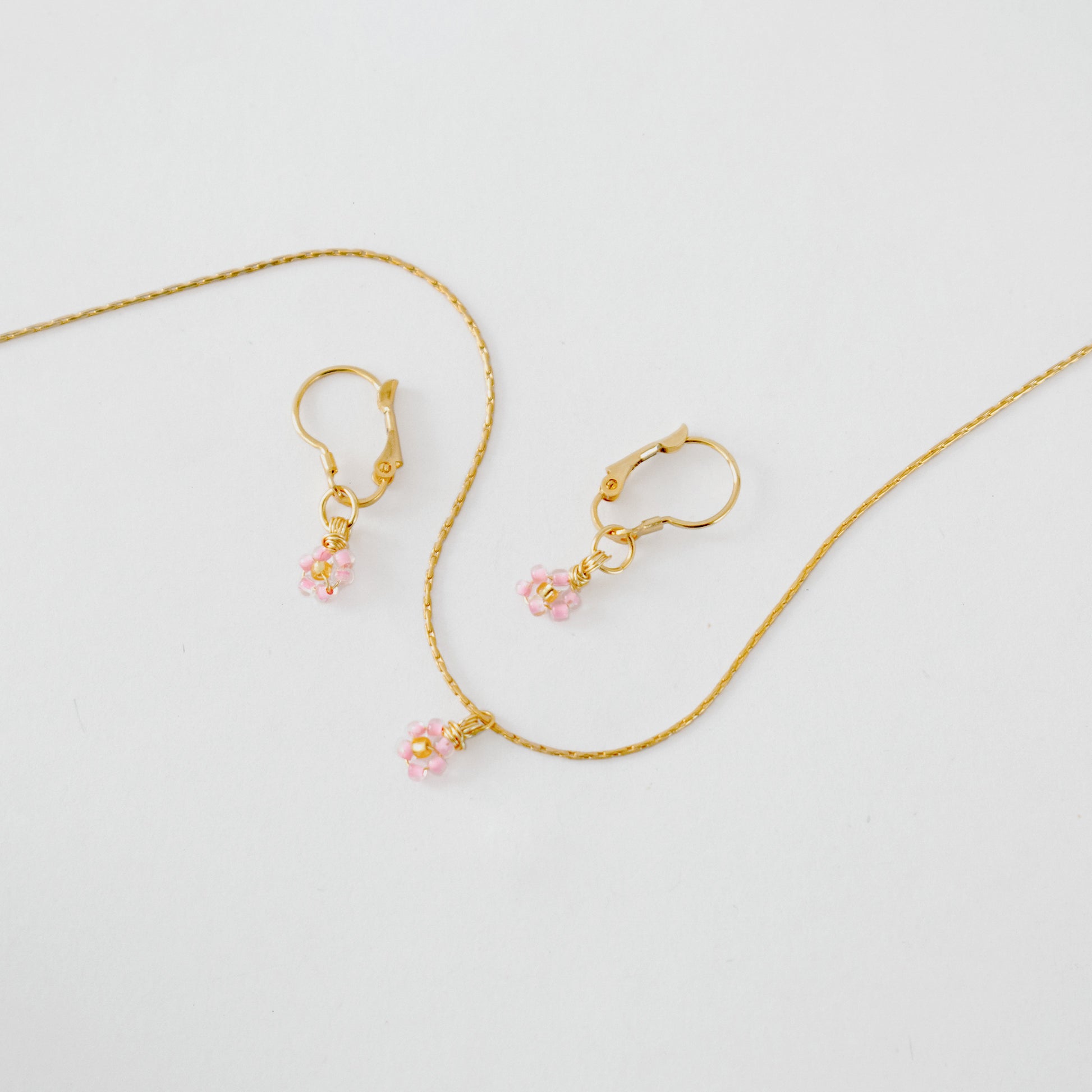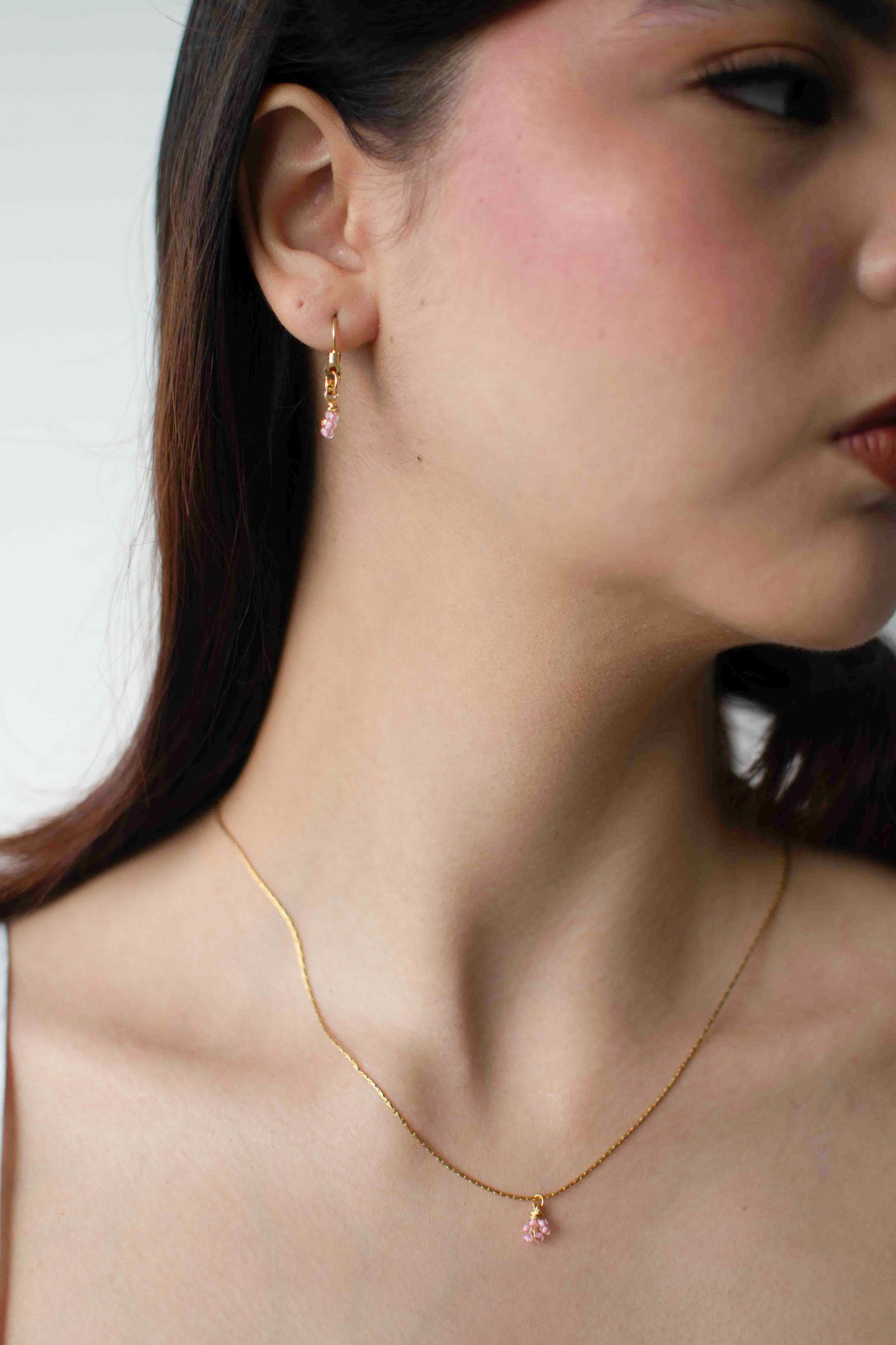 Collar Ángel + Earrings Ángel. Elige el set en tu color favorito: ivory o taffy pink.