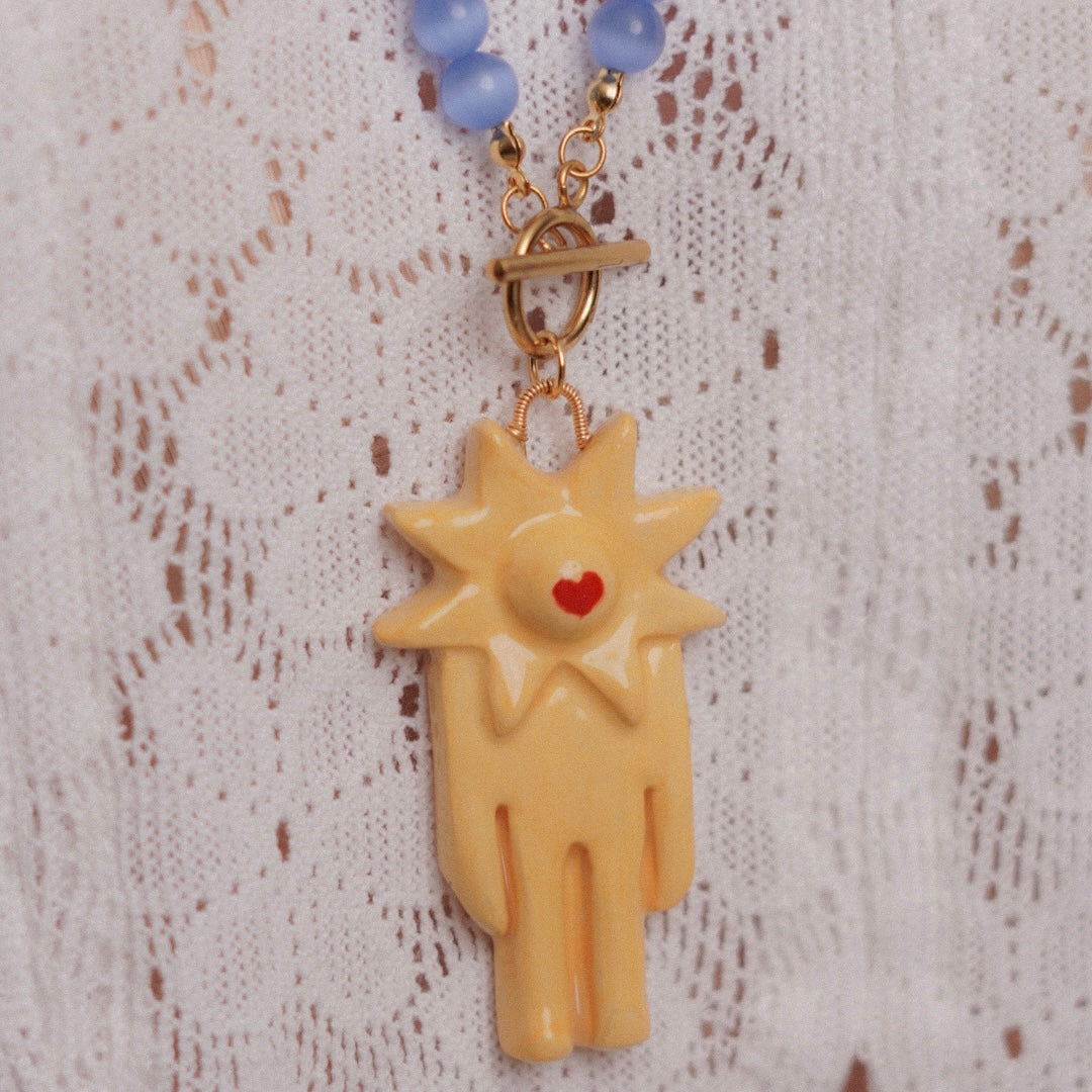 Nuevo collar de péndulo creado en piedras ojo de gato tipo natural, herrajes en acero inoxidable y dije especial creado y pintado a mano en cerámica artesanal. Un recuerdo tangible de nuestros seres favoritos que ya no están, pero su esencia permanece con nosotros.